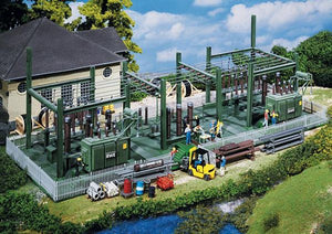 这是一个经常在铁路线附近发现的变电站。变压器和传输线的密度使该套件变得有趣。
