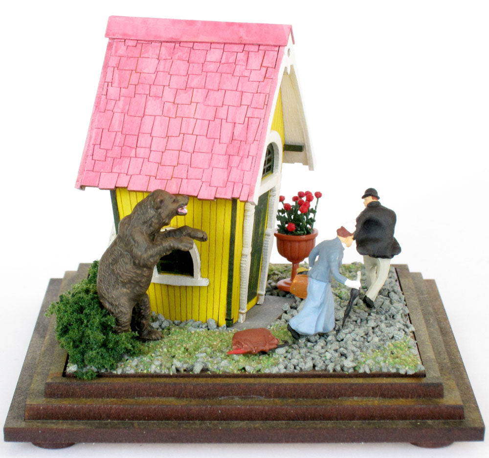 照片显示了一个预先绘制的示例。工具包中不包括玩偶、草和地面石头。