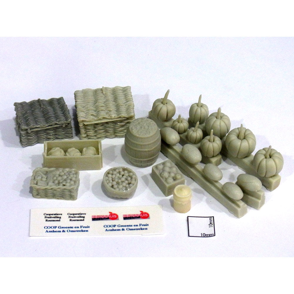 套装包括:2 个篮子、2 个篮子、1 个桶、2 个木箱、13 个蔬菜、1 个罐子