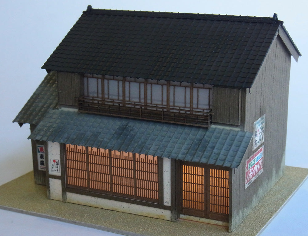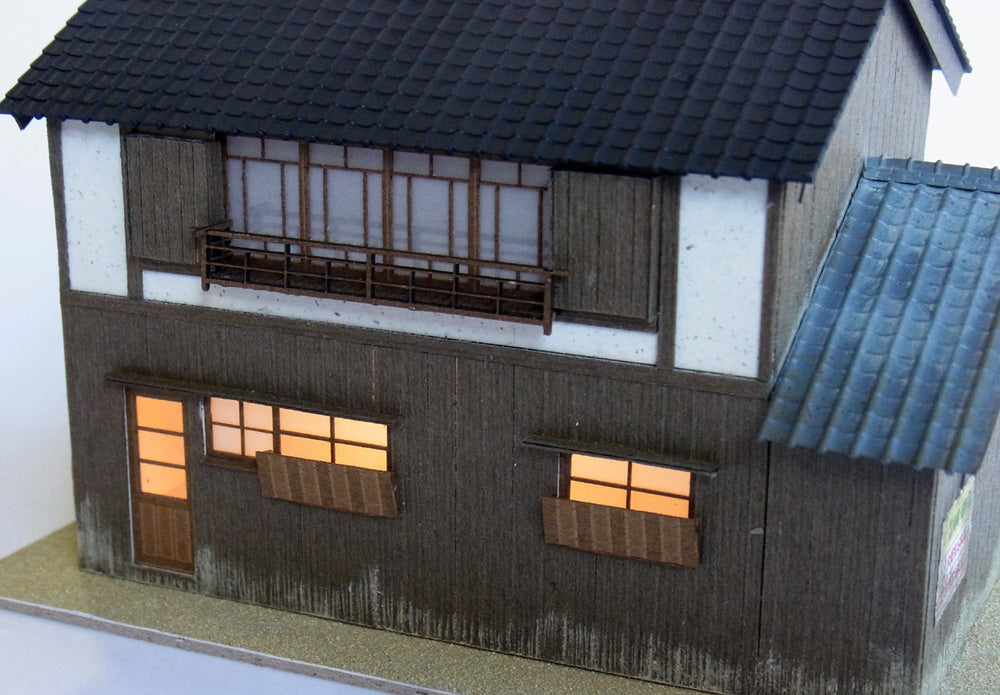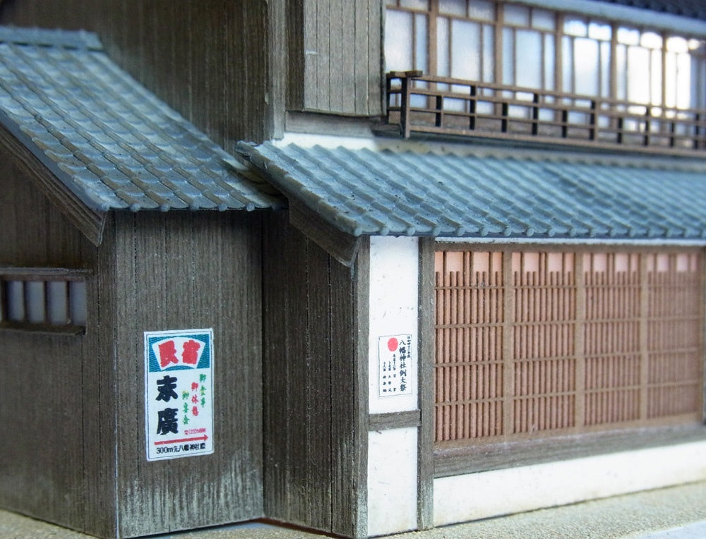 屋顶是用我们的日本瓷砖做的。屋顶是可拆卸的,一楼装饰着灯光。