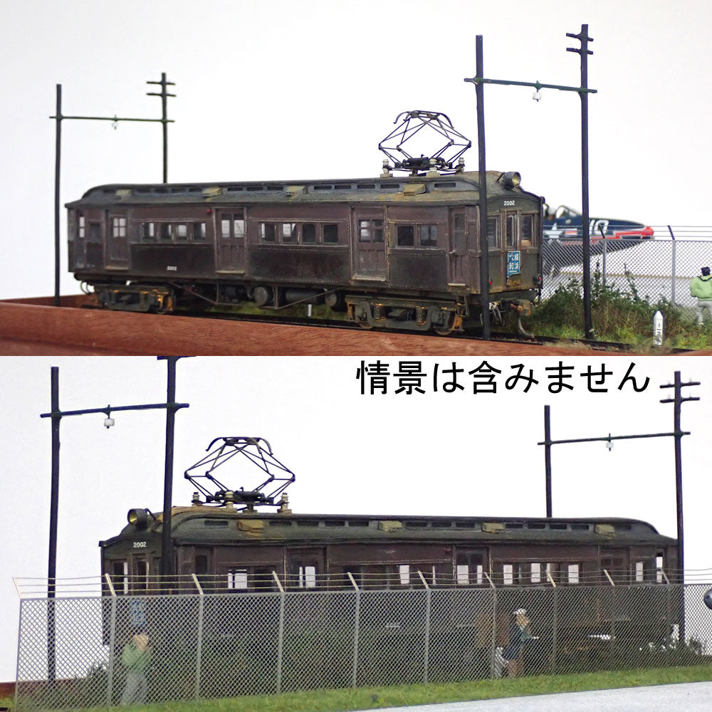 This is a special completed model, assembled and painted by Mr. Nishimura, which was originally a wooden type MOHA1 train of the Ministry of Railways, and then moved to Odakyu and Tokyu before arriving at Sotetsu.