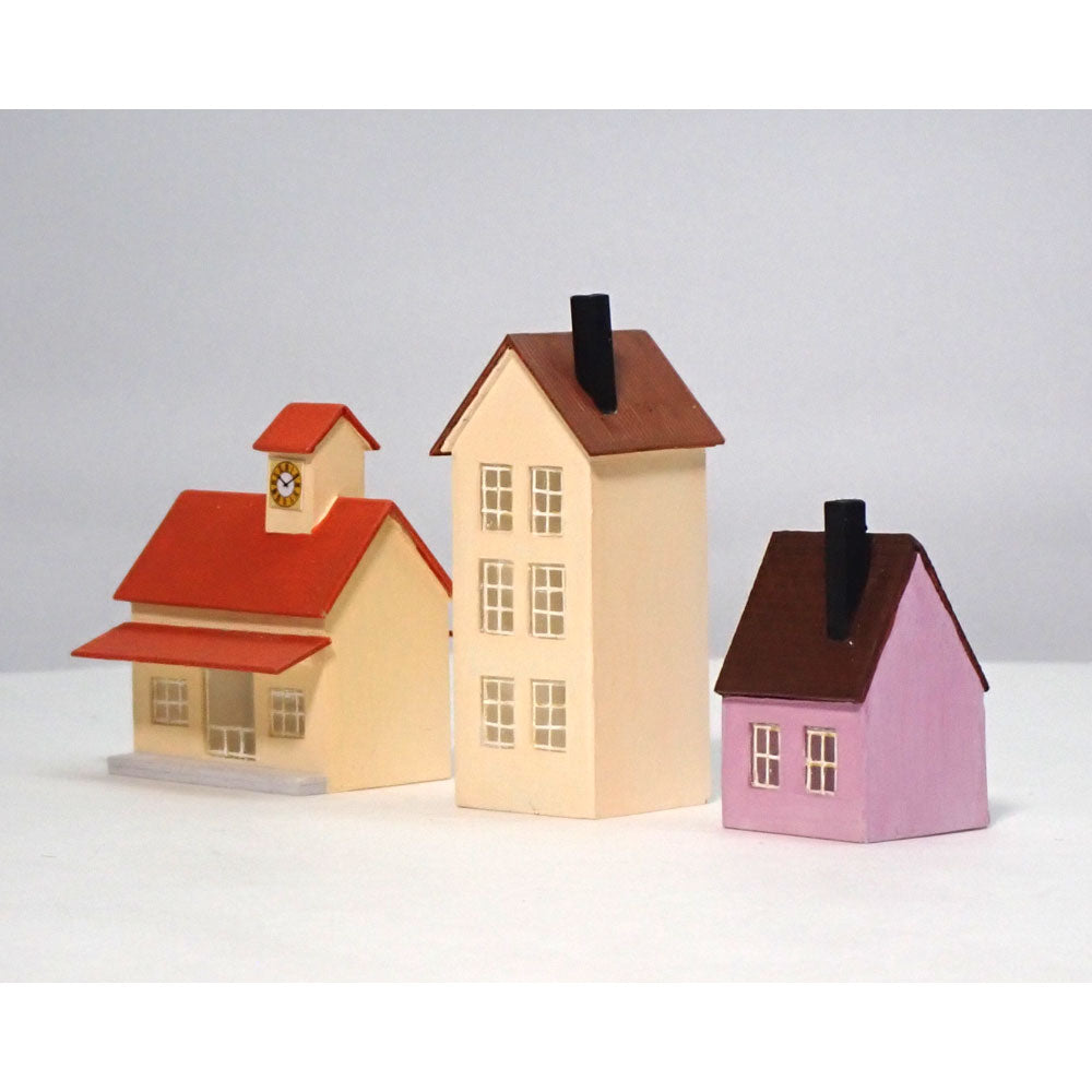 These buildings are designed with a very small footprint and are very useful when the footprint is too large to be placed in a normal 1/150th or N building.