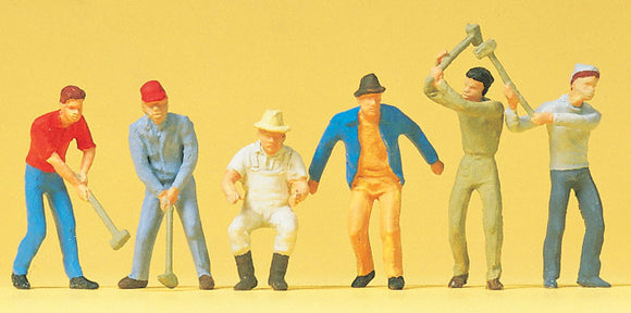 Worker with pickaxe and fork : Preiser, painted 1:22.5 45007