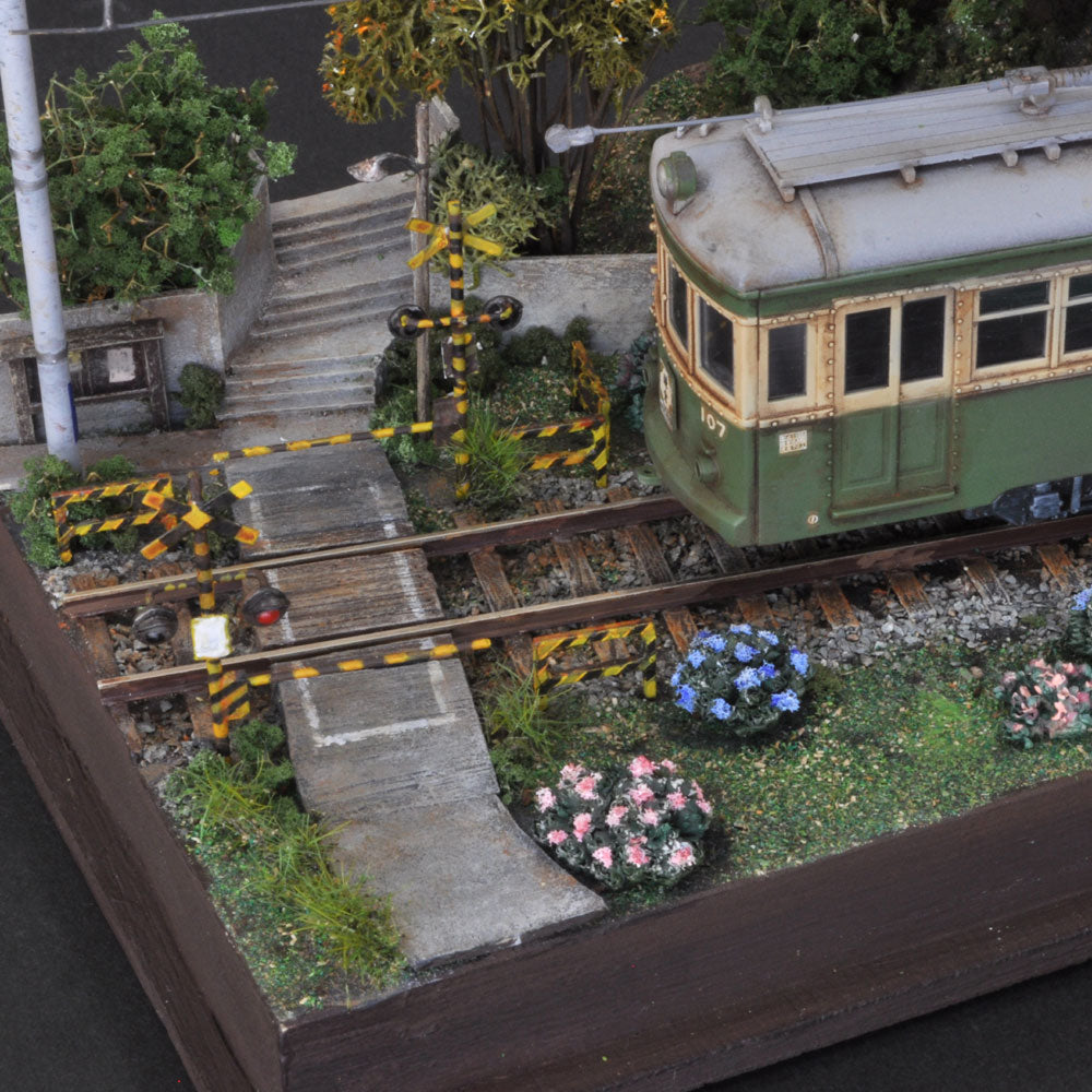 The scene is reminiscent of the area around Gokurakuji, with its level crossings, steep slopes and hydrangeas.