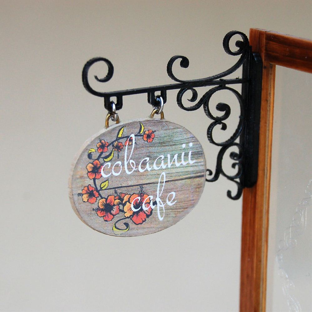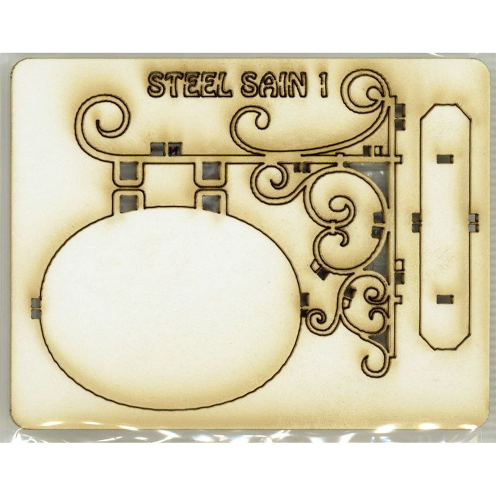 This is a realistic 1/12 scale reproduction of a hanging sign for a shop made of roto-iron (wrought iron).