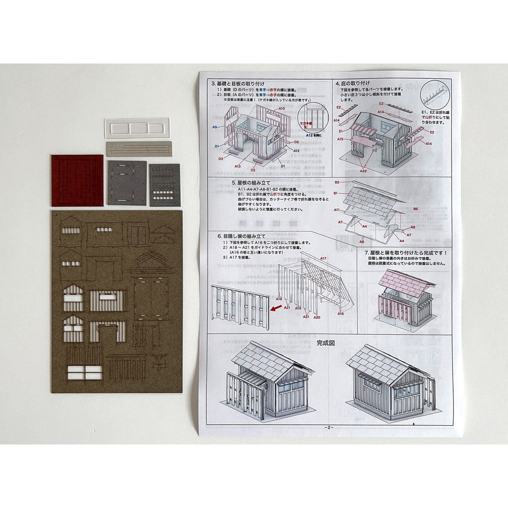 The model uses pre-colored paper and comes with pre-cut plastic bobbins for the window panes, so you can simply assemble the model to create the finished product as shown.