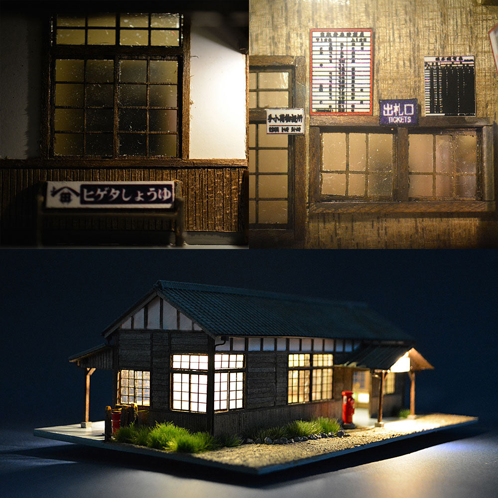 The guttering, weathering and lighting are all done in the Takumi Diorama Craft House style.