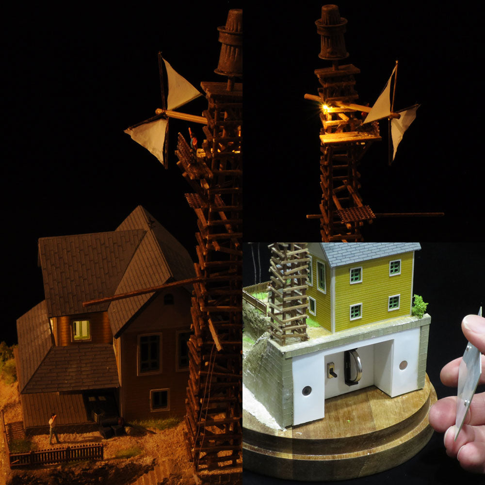 House with Windmill : Lion Model Sho Fujihira - Painted - 1:150 size