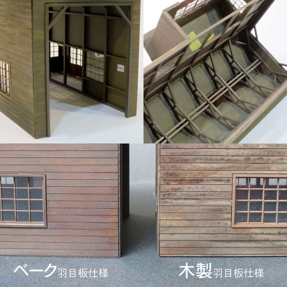 The base kit is mainly made of Bakelite, and in addition, there are two types of products: one is a product that uses Bakelite for the expression of the paneling on the sides of the building, and the other is a specification with wooden side panels affixed over the Bakelite framework, so that you can choose the one that best suits your needs (this product is a high-grade wooden specification).