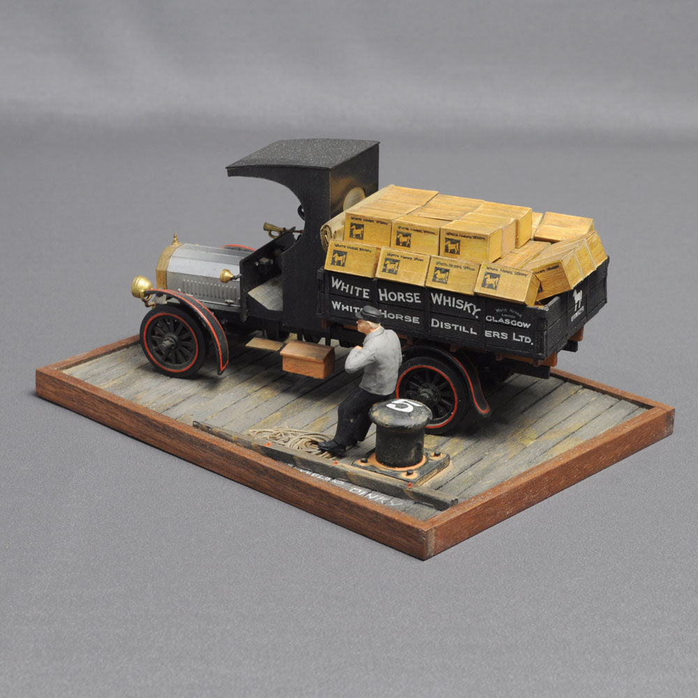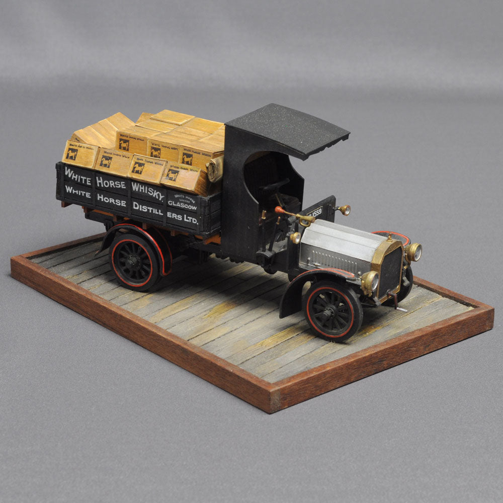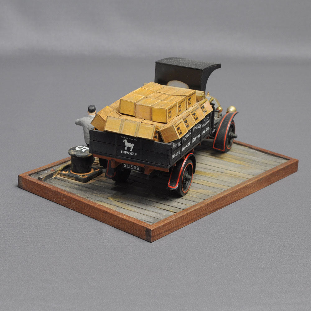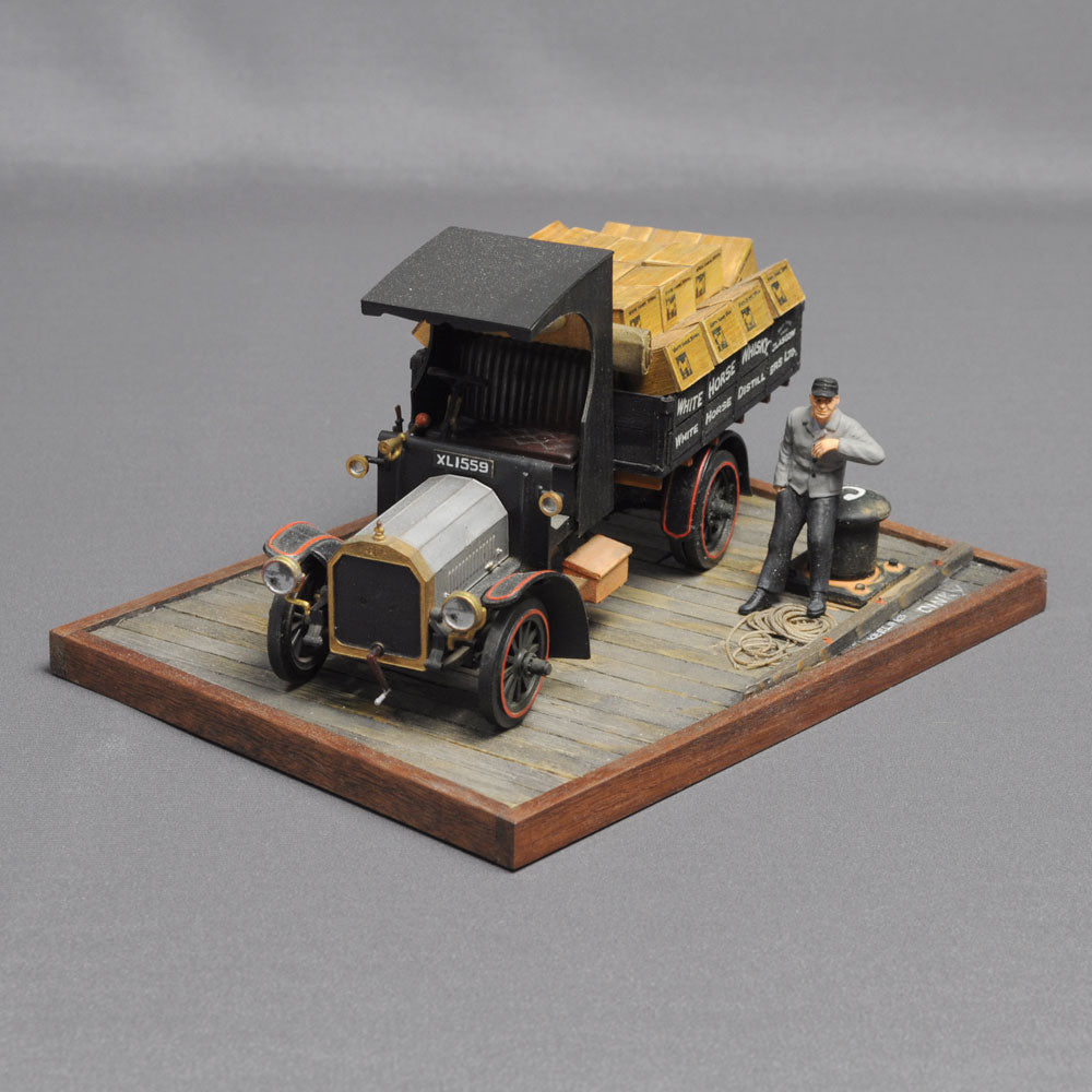 At the beginning of the 20th century, when mass production of cars began in many parts of the world, the British car manufacturer Dennis produced commercial vehicles tailored to its customers. The structure of the ladder-frame chassis, on which the body was placed according to the purpose of use, was also reproduced in the model to create a truck and scene that would have been possible at that time. The headlights are drawn (and painted), which is typical of Mr Nishimura, who is also an active illustrator.