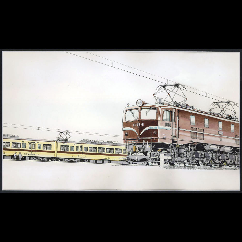 Mr. Nishimura is an illustrator by profession, and this is the original drawing of his book "Densha ni nokatta", published in 1984.