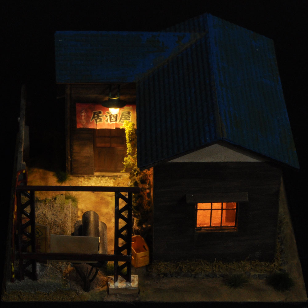 90mm cube miniature "Tavern near the construction site" : Taro, painted, Non-scale