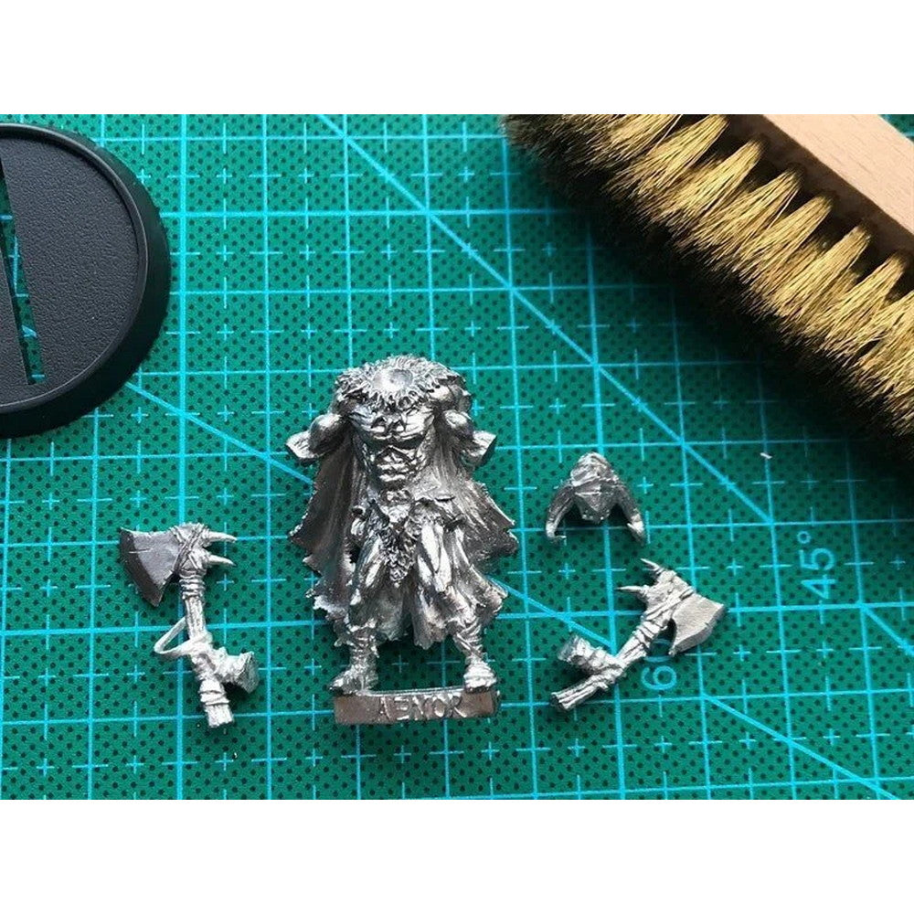 First, it is ideal for treating thin metal "burrs" that form during casting. A light brushing is all that is needed to remove excess and detail. Also, miniatures that have been stored for a long time may have an oxide film on them, which can be brushed off to bring back the original shine of the metal. In addition, removing oil and hand grime from the manufacturing process improves the paint's adhesion, which in turn improves the paint's finish.