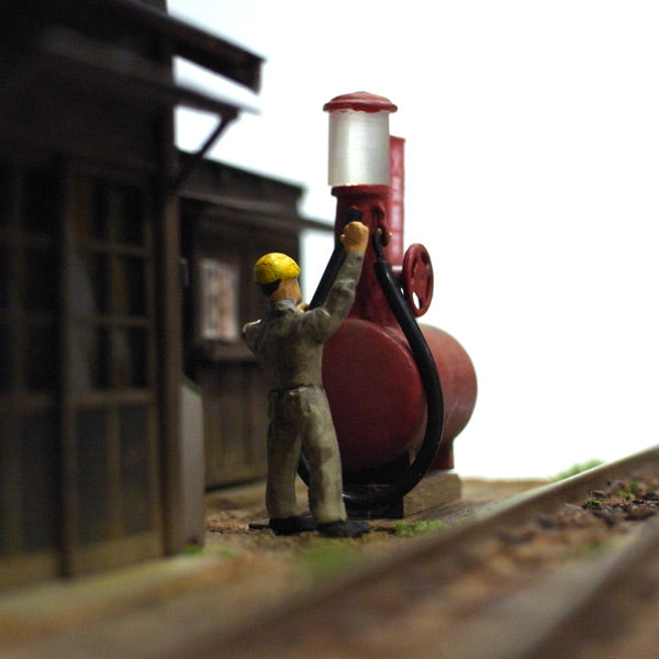 除了加油站和棚子外,我们还自己制作了汽油测量装置。西洋镜的设计方式使您可以想象一个饥饿的人来上班的场景。
