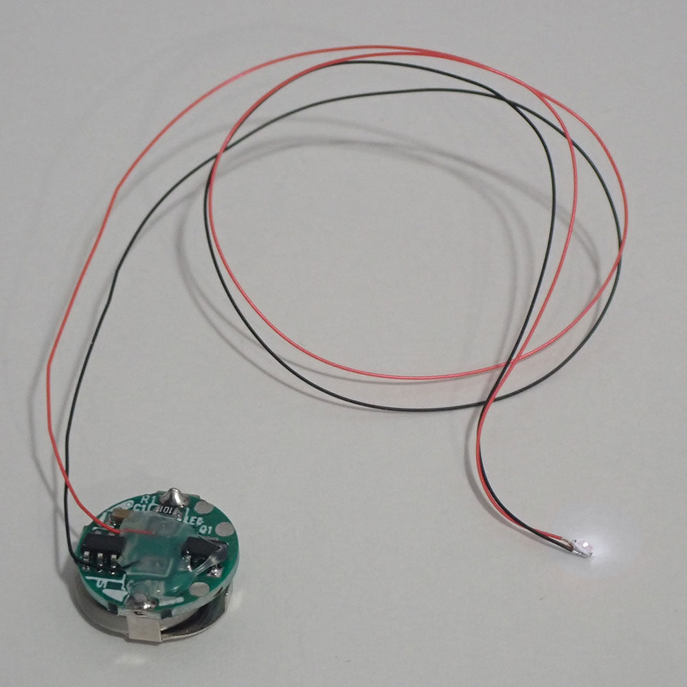 is an ultra-compact LED module that integrates LEDs, a switch, and a battery case in a tiny size of approximately 11 mm in diameter and 5 mm in height.