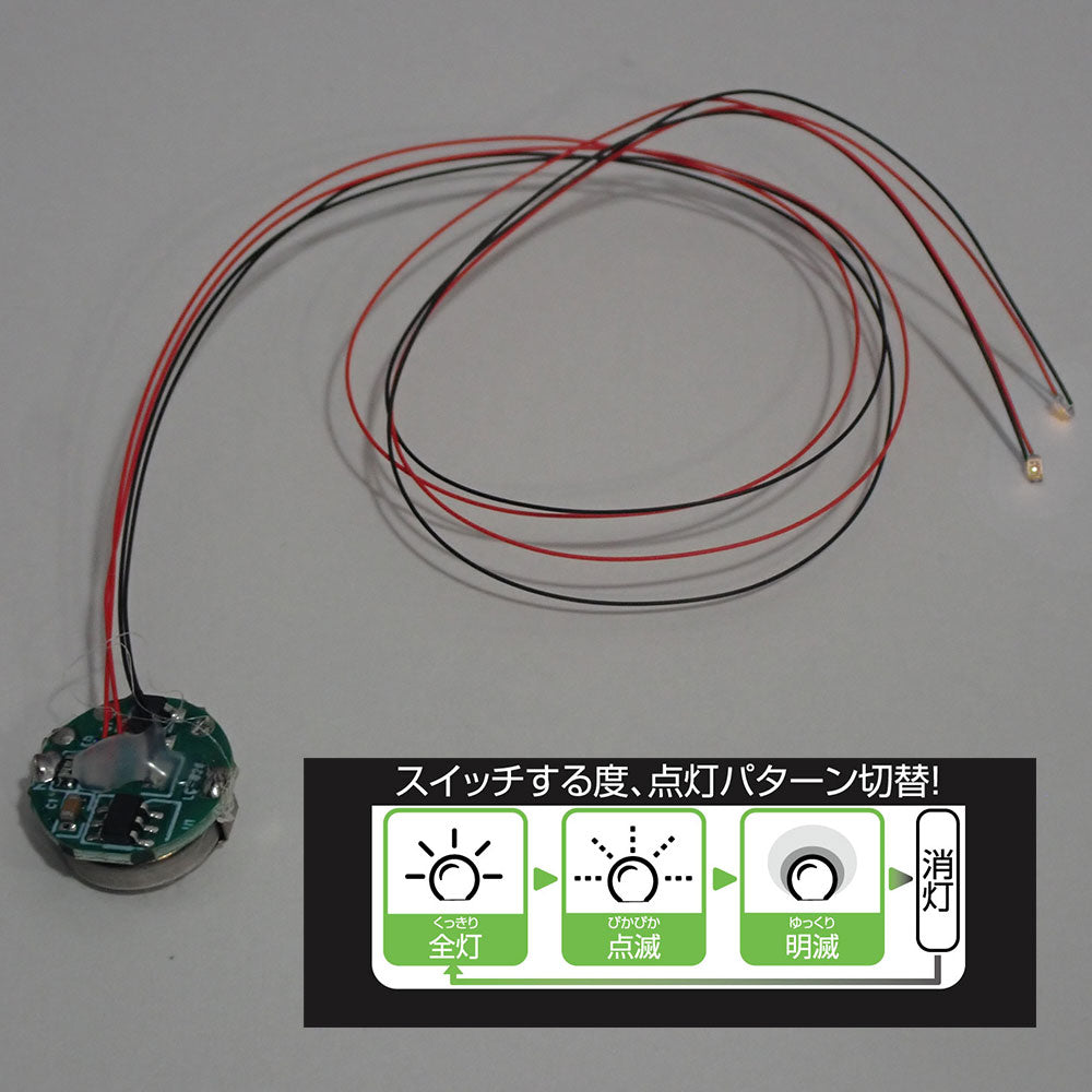is an ultra-compact LED module that integrates LEDs, a switch, and a battery case in a tiny size of approximately 11 mm in diameter and 5 mm in height.