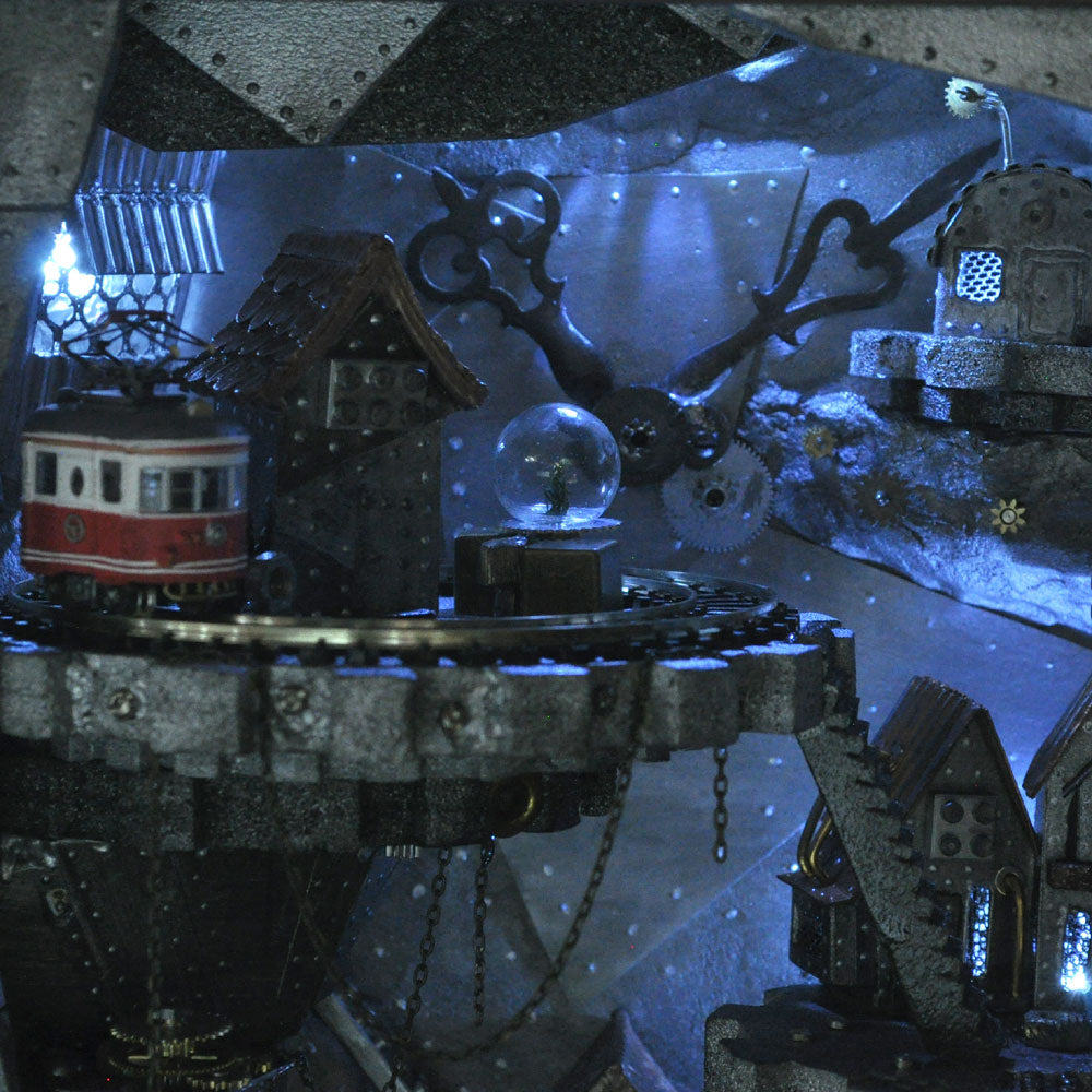 在大型人偶时钟中重现蒸汽朋克世界!它还包含一个非常小的模型铁路布局 (Pike)。