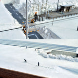 雪原上的一排铁轨。铁轨的黑白对比很美,是西村作为插画家的典型作品。