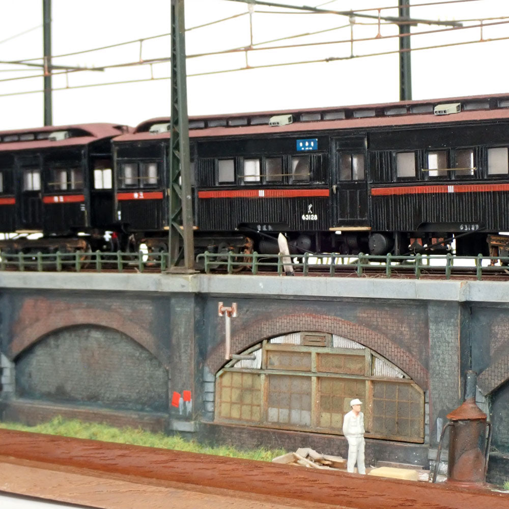 Tokyo Elevated Line with 3 cars : Yoshiaki Nishimura HO layout section diorama work 1:80scale