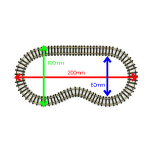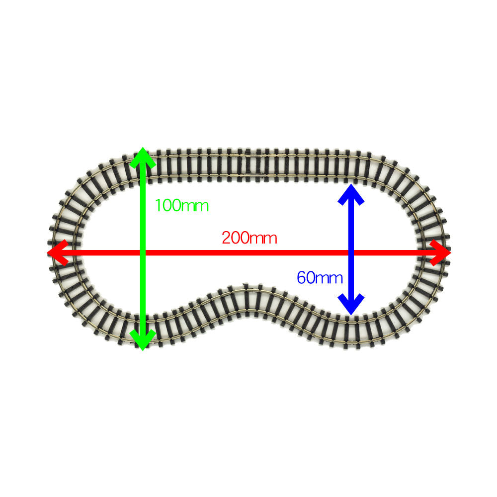 * Rail dimensions (maximum): approx. 200 mm x 100 mm, in reality, it is necessary to place models such as buildings in an area farther from the track to prevent vehicles from hitting them when running.
