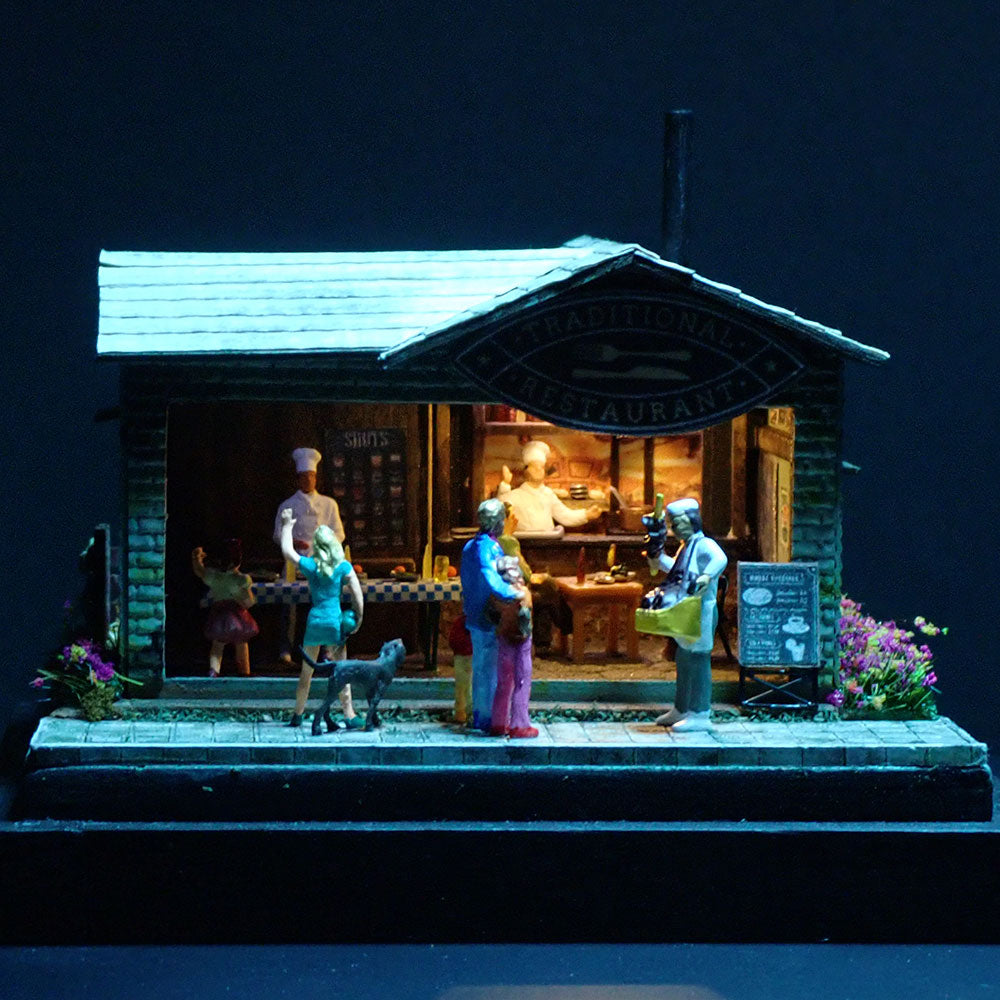 90mm cube miniature "Kebab store on the main street" : Taro, Diorama art work Non-scale 282